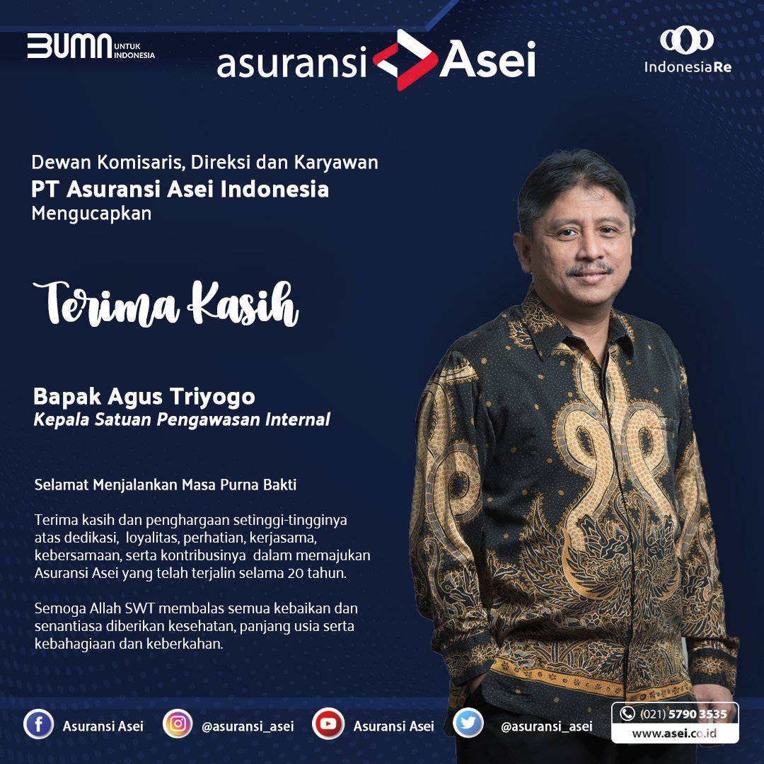 PT Asuransi Asei Indonesia atau Asuransi Asei (d/h) PT Asuransi Ekspor Indonesia (Persero) adalah salah satu perusahaan asuransi yang memiliki produk asuransi yang lengkap. Produk Asuransi Perdagangan, Asuransi Kredit & Penjaminan, Asuransi umum dan Asuransi Syariah. Sehingga kami juga dikenal sebagai 'One Stop Shop for Insurance'. Asuransi Asei's shareholders as per December 31, 2017 are Asei Re with 99.998% ownership and the remaining 0.002% owned by Employee Cooperative of PT Asuransi Ekspor Indonesia (Persero). On October 31, 2014, Indonesian Financial Services Authority has permitted the diversion of Asei Re's direct business & reinsurance business to PT Asuransi ... Klaim Asuransi Keuangan-Divisi Klaim dan Reasuransi (PT Asuransi Asei Indonesia) Jakarta. Duniantri Wenang. Duniantri Wenang AVP - Head of Casualty at PT AIG Insurance Indonesia Indonesia. Randy Arief Prayogo. Randy Arief Prayogo PT Driessa Nedda Asia Jakarta. Afrianto Budi, MM, CIIB, ANZIIF (Snr Assoc) CIP ... Fitch Ratings - Jakarta - 14 Apr 2021: Fitch Ratings Indonesia has revised the Outlook on Asuransi Asei Indonesia's (Asei) Rating to Stable from Negative, and affirmed the National Insurer Financial Strength (IFS) Rating at 'A+ (idn)'. 'A' National IFS Ratings denote a strong capacity to meet policyholder obligations relative to all other ...