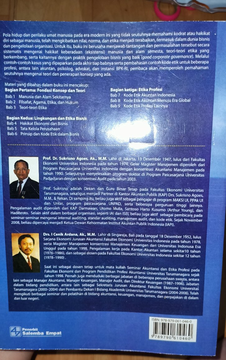 Request Full-text Paper PDF ... Etika Bisnis dan Profesi: tantangan membangun manusia seutuhnya. Jan 2006. Sukrisno Agoes. Agoes, Sukrisno. 2006.