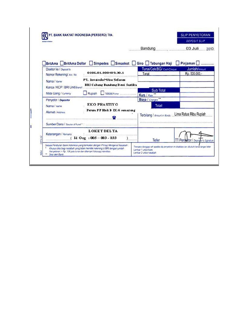 30 Formulir Bank Bahasa Inggris Info Dana Tunai