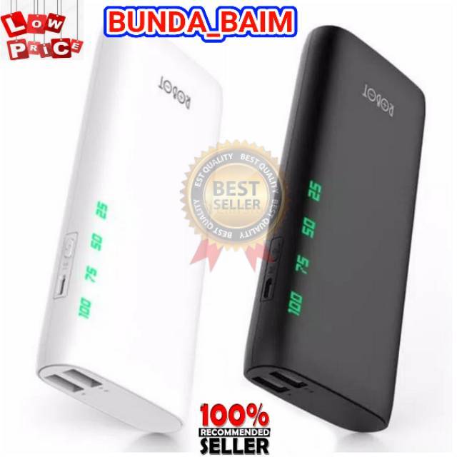 Daftar Harga Power Bank Murah Original Merk Terbaik Terbaru 2022 Adalah sebuah power bank yang merupakan daya penyimpan listrik yang nantinya akan memberikan suplaian daya listrik penuh terhadap sebuah 175.000. Tipe Baterai : Lithium Polymer, Kapasitas : 10000 mAh, Jumlah Port Keluaran : 2 Port(s), Berat : 220 g. Merk Robot. Harga. Spesifikasi.