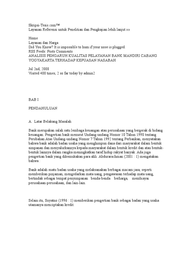 PDF A. Latar Belakang Bank syariah didirikan pada tahun 1992 untuk... Bank Mandiri Syariah merupakan bank yang beroperasi atas dasar prinsip syariah Islam menetapkan budaya perusahaan yang mengacu kepada sikap Dari latar belakang di atas maka yang menjadi permasalahan dalam penelitian ini adalah Bagaimana Peran citra customer service di Bank Mandiri...