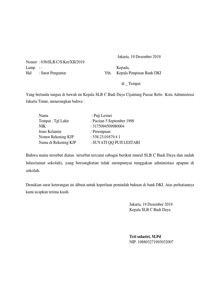 Surat pengantar ke bank. Contoh Surat Pengantar Untuk Buka Rekening Bank baru ... Surat Pengantar bank bisa digunakan oleh karyawan setelah bank dan perusahaan telah melakukan kerja sama dimana jika nantinya ada karyawan baru maupun lama yang belum mempunyai Rekening bank bisa membuat dengan mudah walaupun menggunakan KTP daerah . Contoh Surat Pengantar Untuk Buka Rekening Bank baru lezgetreal.com › contoh-surat-izin-keramaian10+ Contoh Surat Izin Keramaian ke Polsek Berbagai Acara dan ... Dec 15, 2021 · Untuk meminta surat keterangan dari kelurahan, pemohon harus mengantongi surat pengantar dari ketua RT kemudian RW. Baru setelah itu mengajukan ke Kelurahan. Jika mendatangkan massa lebih dari seribu orang proposal kegiatan dan izin dari tempat digelarnya kegiatan perlu dilampirkan. 7 Contoh Surat Pengantar yang Baik dan Benar - Contoh Surat Contoh Surat pengantar adalah surat yang dibuat untuk tujuan memberitahu kepada pihak yang ingin dituju oleh pembawa surat. Surat ini digunakan untuk menjadi tanda bahwa pembawa surat telah diketahui dan disetujui oleh pihak yang bisa bertanggung jawab. Dengan adanya surat ini maka pihak pembawa surat tidak dicurigai oleh pihak yang dituju. Contoh Surat Pengantar Dari Perusahaan - Contoh Surat Kumpulan Contoh Surat Pengantar Dari Perusahaan yang Benar 2019. Contoh Surat Pengantar Dari Perusahaan have an image from the other.Contoh Surat Pengantar Dari Perusahaan It also will include a picture of a sort that may be observed in the gallery of Contoh Surat Pengantar Dari Perusahaan. The collection that comprising chosen picture and the best amongst others.