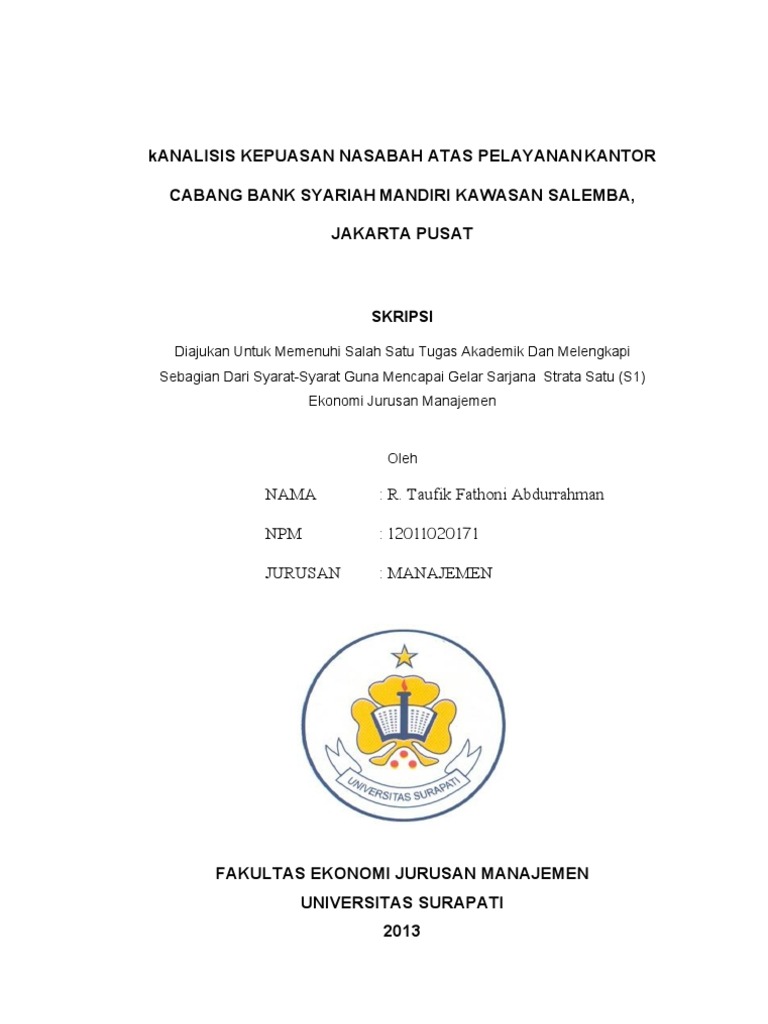 SKRIPSI ANALISIS PEMAHAMAN NASABAH BANK SYARIAH TERHADAP ... skripsi analisis pemahaman nasabah bank syariah terhadap penggunaan atm (studi pada mahasiswa perbankan syariah uin ar-raniry banda aceh) disusun oleh: alfin nuri akmalia program studi perbankan syariah fakultas ekonomi dan bisnis islam universitas islam negeri ar-raniry banda aceh 2018 m / 1440 h nim. 140603028 Contoh Makalah Tentang Bank Syariah Mandiri | My Skripsi Contoh makalah tentang bank syariah mandiri. Kemudian berikutnya berdiri Bank Syariah sebagai cabang dari Bank Konvensional yang sudah ada seperti Bank BNI Bank IFI dan BPD Jabar. PT Bank Syariah MandiriPT Bank Syariah Mandiri 1 Laporan Tahunan 2013 Laporan Tahunan 2013 Keterangan Desain dan Photo Pendukung. 14+ Judul Skripsi Manajemen Keuangan Tentang Bank Syariah ... Judul Skripsi Manajemen Keuangan Bank Syariah It also will feature a picture of a sort that may be observed in the gallery of Judul Skripsi Manajemen Keuangan Bank Syariah. SKRIPSI PERSEPSI NASABAH TENTANG KUALITAS PELAYANAN BANK. Studi empiris tentang instrumen moneter pada sistem dual banking di indonesia periode 1997i-20031. SKRIPSI PEMAHAMAN MASYARAKAT TENTANG PERBANKAN SYARIAH (Studi ... masyarakat tentang bank syariah di Kampung Adi Jaya yaitu masyarakat hanya sekedar tahu adanya bank syariah tetapi tidak paham tentang bank syariah secara detail. Hanya sebagian masyarakat yang paham tentang bank syariah bahkan ada yang sama sekali tidak tahu mengenai bank syariah. Sebagian besar masyarakat