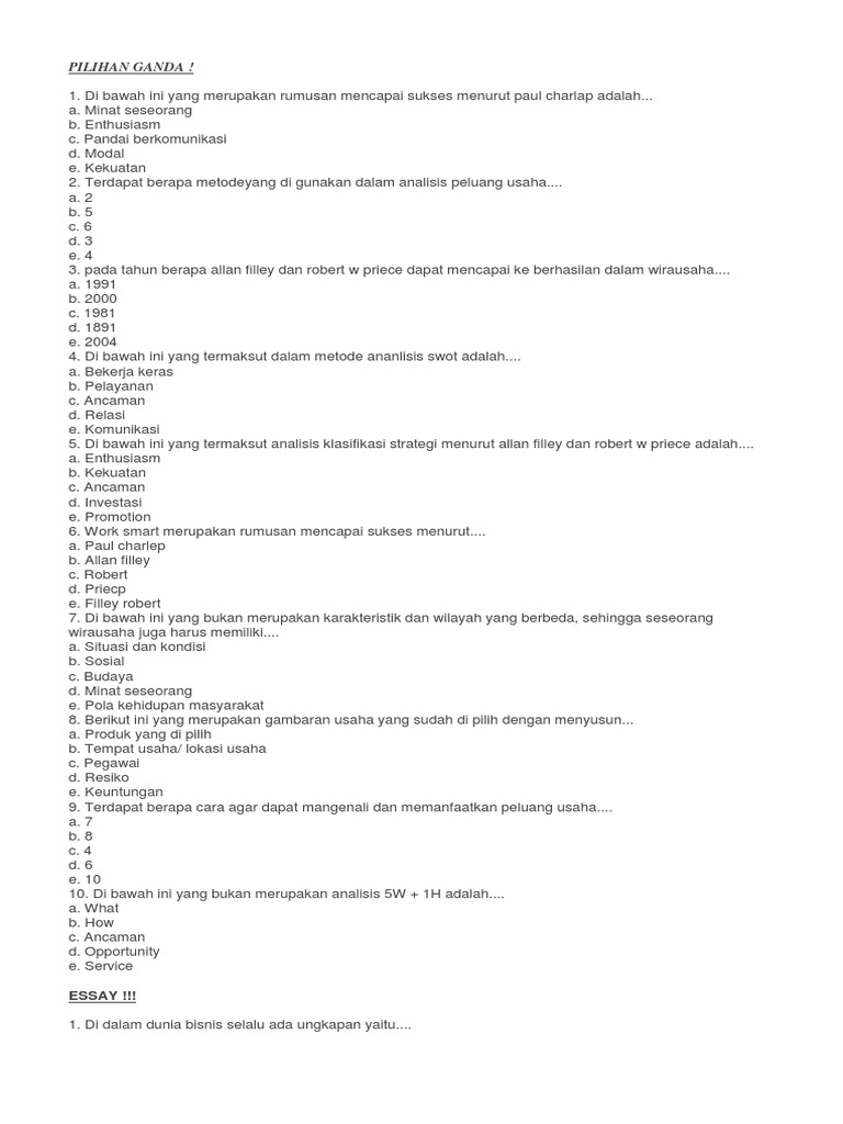 Soal Dan Jawaban Prinsip-prinsip Bisnis Kelas 11 Soal Bisnis Online Kelas XIXII SMK Kurikulum 2013 Dalam soal SMK Bisnis Daring dan Pemasaran ini ada beberapa materi yang menjadi dasar dalam penyusunan soal Bisnis Online ini antara lain. Soal PG PPKn Kelas 11 Bab 6 Persatuan dan Kesatuan Bangsa dalam Negara Kesatuan Republik Indonesia Jawablah soal-soal berikut ini dengan memilih huruf A B C ...