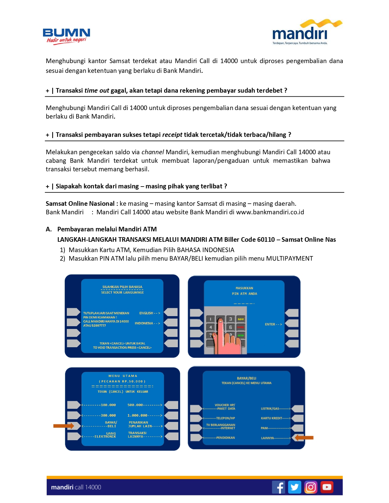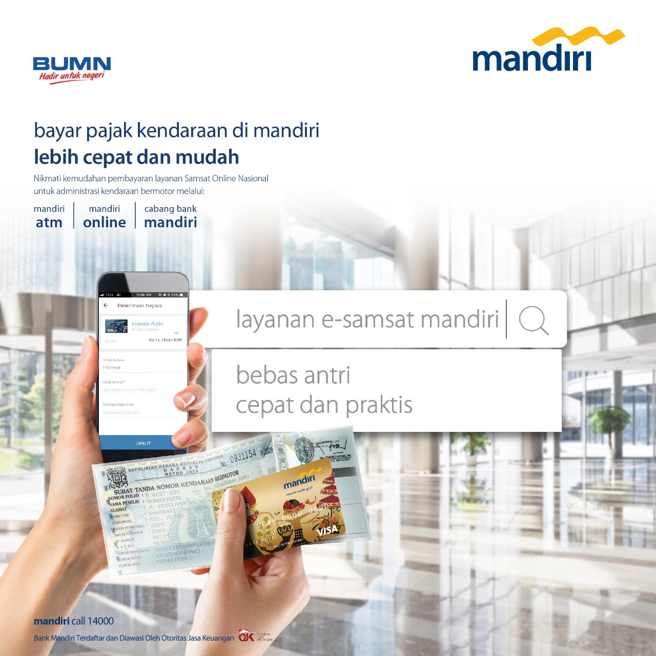 25 E Samsat Bank Mandiri - Info Uang Online Mandiri call 14000 atau website bank mandiri di wwwbankmandiricoid. Tartono menambahkan kini di samsat induk di wilayah hukum polda metro jaya telah disediakan loket khusus e samsat. Makin mudah dan praktis bayar e samsat untuk pajak kendaraan anda di mandiri online.