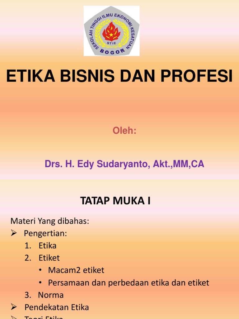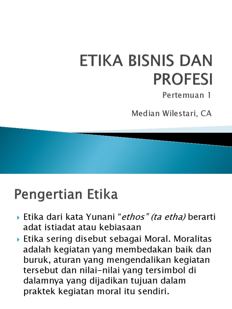 PPT - ETIKA BISNIS DAN PROFESI PowerPoint presentation ... Etika Bisnis dan ProfesI - Title: Etika Bisnis dan ProfesI Author: karman Last modified by: karman Created Date: 6/29/2010 5:20:33 AM Document presentation format: On-screen Show (4:3) | PowerPoint PPT presentation | free to view