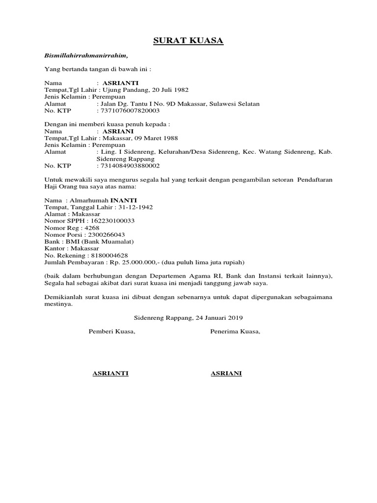 Surat kuasa pengambilan uang di bank bri. Download Contoh Surat Kuasa Pengambilan Uang di Bank BRI Selanjutnya disebut sebagai Penerima Kuasa. Dengan ini saya selaku Pemberi Kuasa memeberikan kuasa kepada isteri saya yang bernama Candra Kurniawati (Penerima Kuasa) agar dapat melakuakan pengambilan uang secara tunai dengan jumlah sebesar RP. 19.000.000,00 (sembilan belas juta rupiah) pada rekening Bank BRI, dengan data-data sebagai berikut : Download Contoh Surat Kuasa Lengkap Selain buku tabungan, nasabah akan menerima kartu atm untuk memudahkannya dalam mengambil uang tanpa harus mengantri di bank terlebih dahulu. 7 contoh surat kuasa terbaik dan lengkap. Agar lebih jelasnya lagi, berikut penjelasan secara lengkap dan detail tentang surat kuasa. Contoh Surat Kuasa Pengambilan Tabungan Bri These are so many great picture list that may become your inspiration and informational purpose of Contoh Surat Kuasa Pengambilan Tabungan Bri design ideas for your own collections. really is endless you are enjoy and lastly can find the best picture from our collection that submitted here and also use for ideal needs for personal use. sumut.suara.com › read › 2022/04/04Jangkauan dan Persebaran Mantri BRI Saat ini Capai Lebih dari ... Apr 04, 2022 · Jangkauan maupun persebaran Mantri BRI saat ini pun sudah mencapai lebih dari 69.741 desa di seluruh Indonesia, dengan jumlah Mantri mencapai 31 ribu orang. Sebanyak 65,5% atau sekitar Rp617,8 triliun dari total portofolio penyaluran kredit BRI juga telah menerapkan prinsip Environment, Social, Governance (ESG).